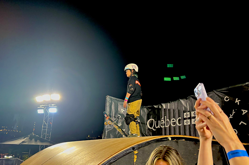 決勝に上がりたい。しかし相手は有力選手ばかり。高さで評価されると体格や筋力で不利なエマには厳しい。だからこそ、トリックの難易度とコンビネーションで勝負するしかなかった。ジャッジにはバーチカルスケートボード界の重鎮、PLGことピエール=リュック・ガニョンがいた。Xゲームズで何度も金メダルを獲得した実力者で、わたしにとっては現在から過去まで見渡しても五本の指に入るスケーターだ。PLGなら技術をしっかり見てくれると信じていた。エマに緊張はなく、「このルーティンは乗れるわ」と自信を見せていた。